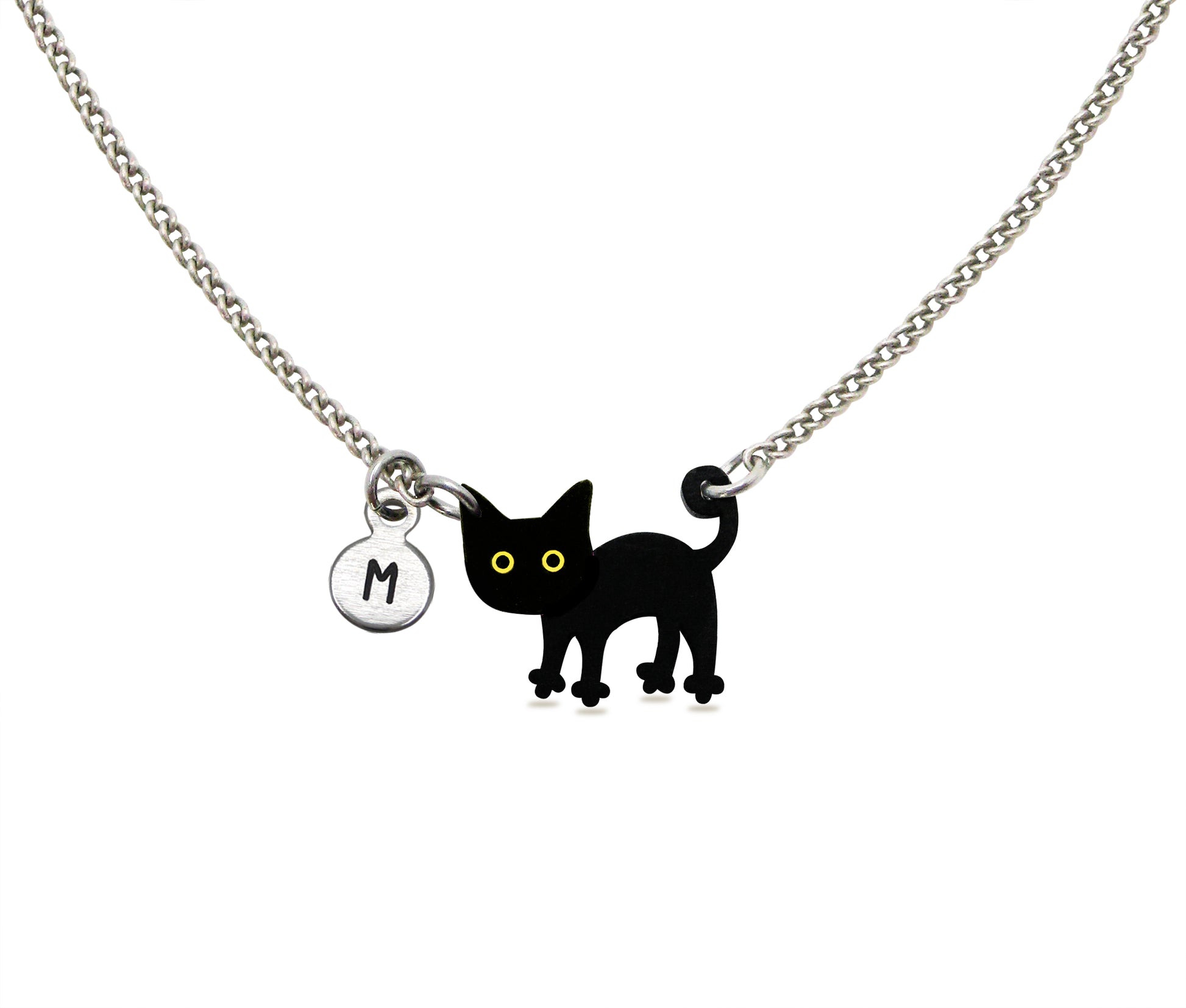 Tiny Black Cat Necklace | Hypoallergenic Halloween Witch Jewelry | Minimalist Cat