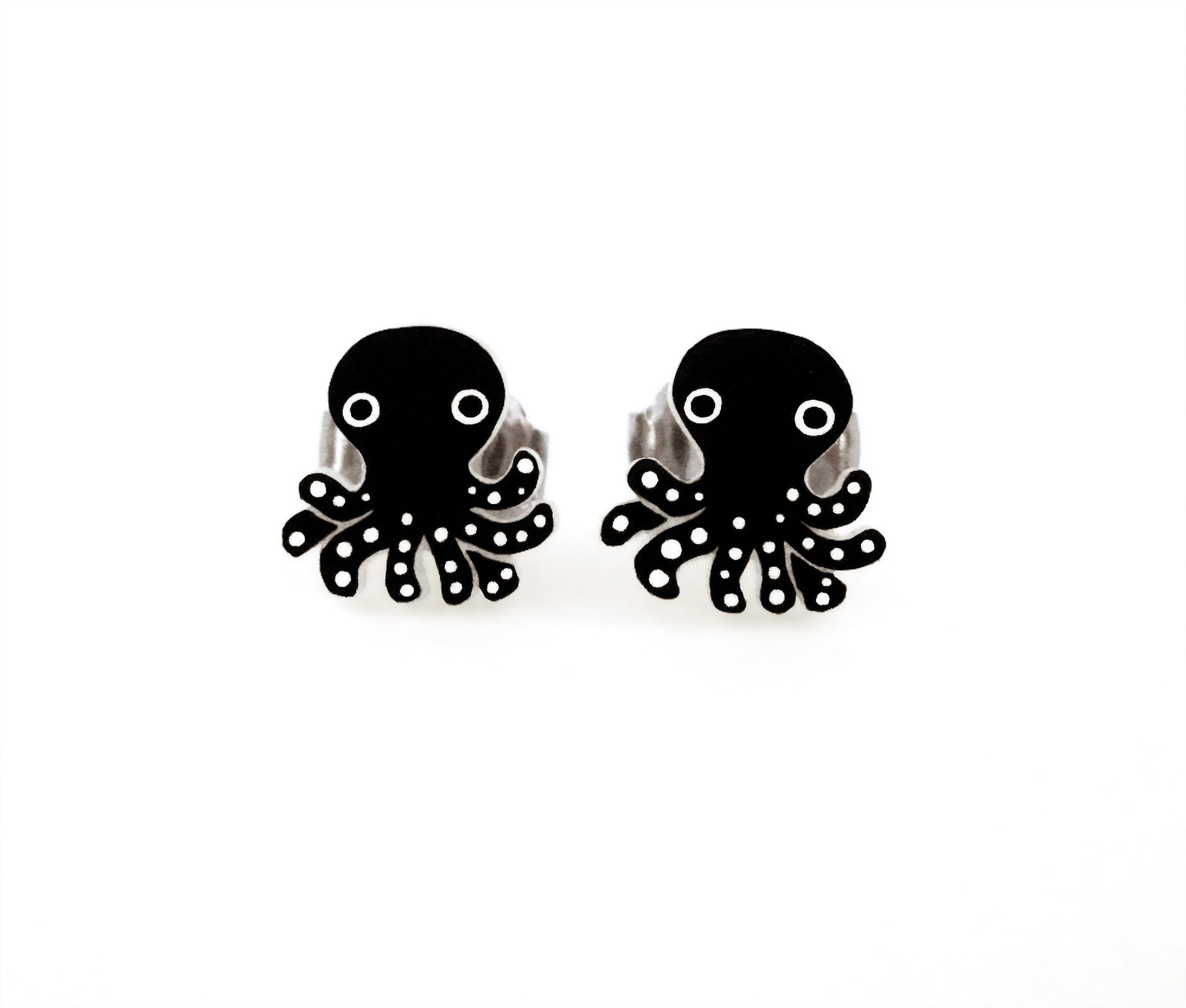 Tiny Black Octopus Stud Earrings | Hypoallergenic Sea Creature Jewelry