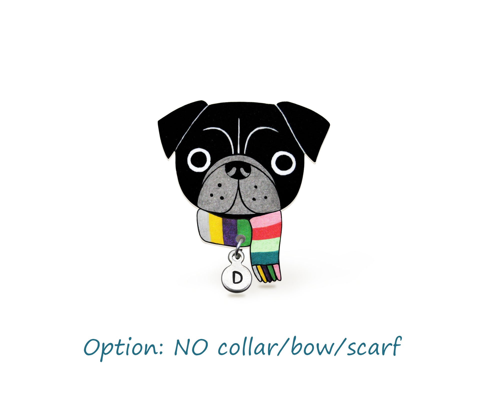 Each image is carefully drawn with color pencils and permanent markers, hand cut with a pair of tiny scissors, and shrunk with a heat gun. While these images are sealed with acrylic coatings, I would suggest not to immerse them in water. Pick your favorite collar, bow, or scarf and one of the hand stamped initial letter charms for personalization.