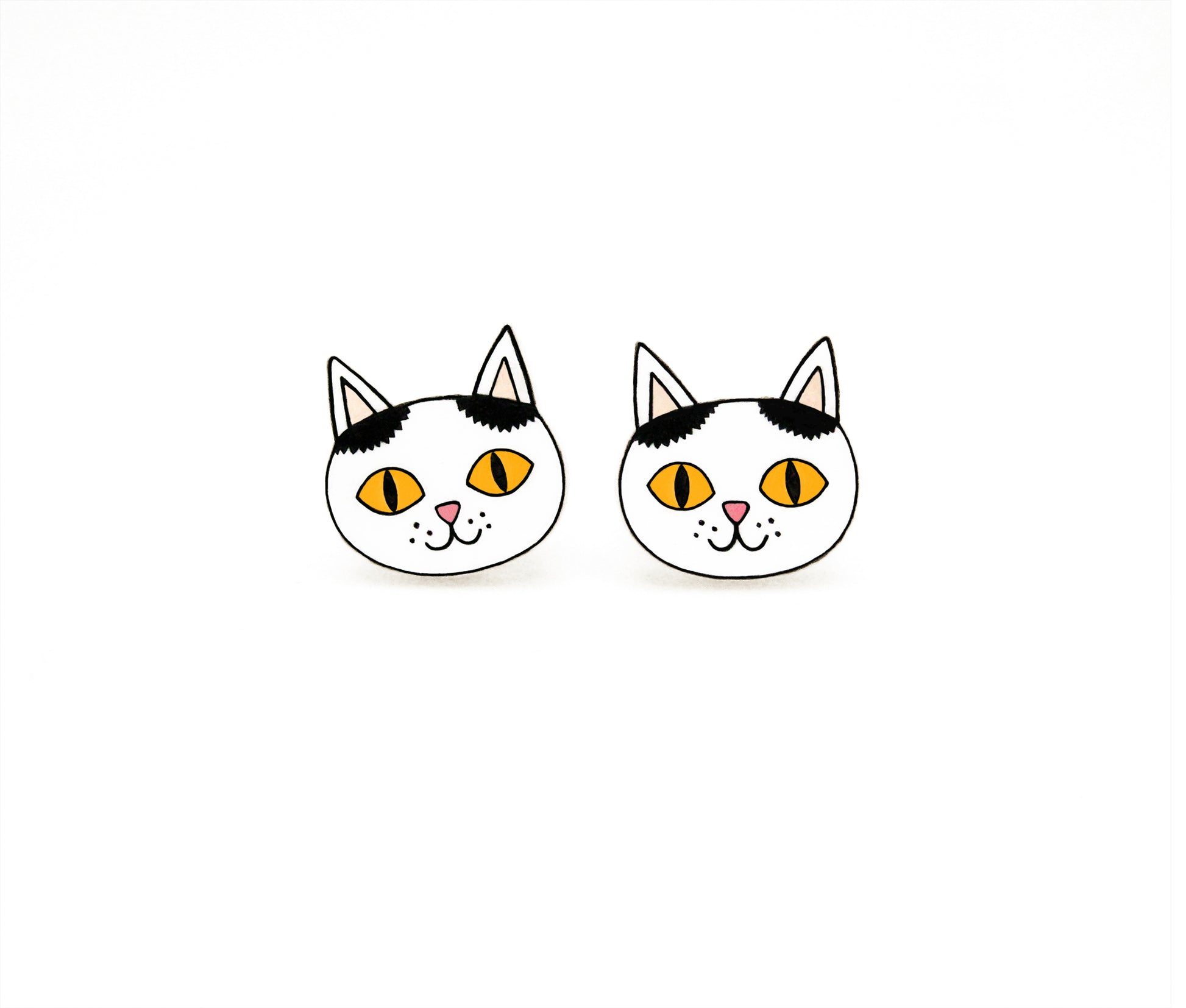 Tiny Black & White Tuxedo Cat Stud Earrings #4 | Hypoallergenic Pet Lover Gift