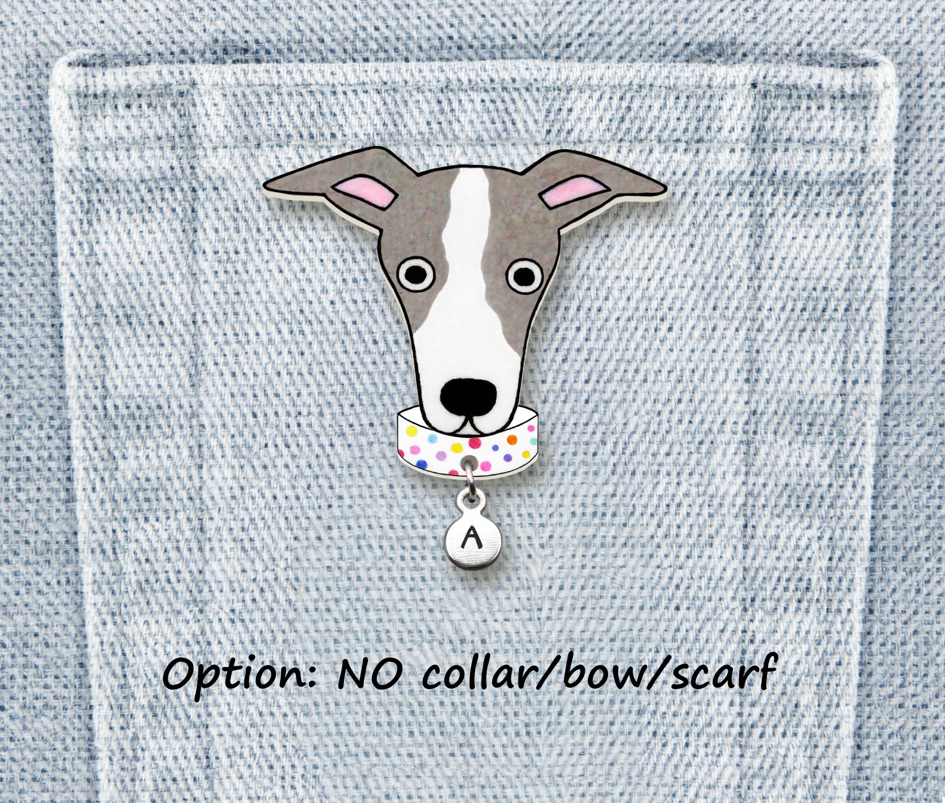 Italian Greyhound Whippet Pin | Blue Gray & White Dog Pin