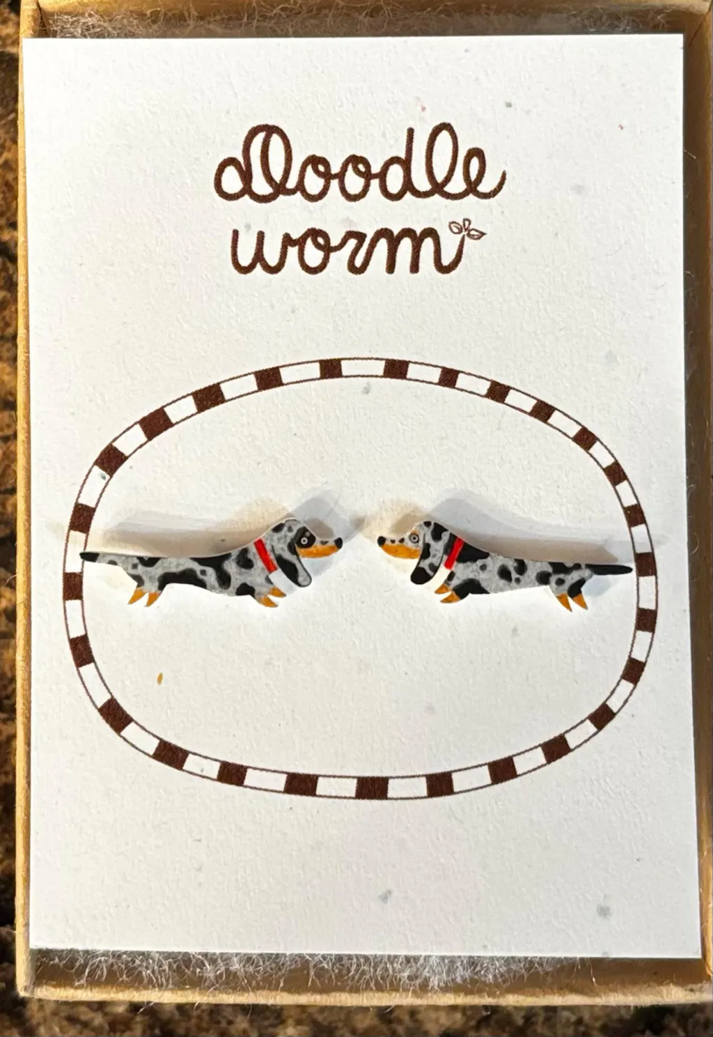 These are the most adorable doxie earrings (that look just like my pups)! The seller was quick to respond to queries and allowed me to customize the order. They arrived super fast, and went from their cute packaging directly into my ears before I could blink, and I've been having every one look at my ears all day long. Love them oh so much!!!