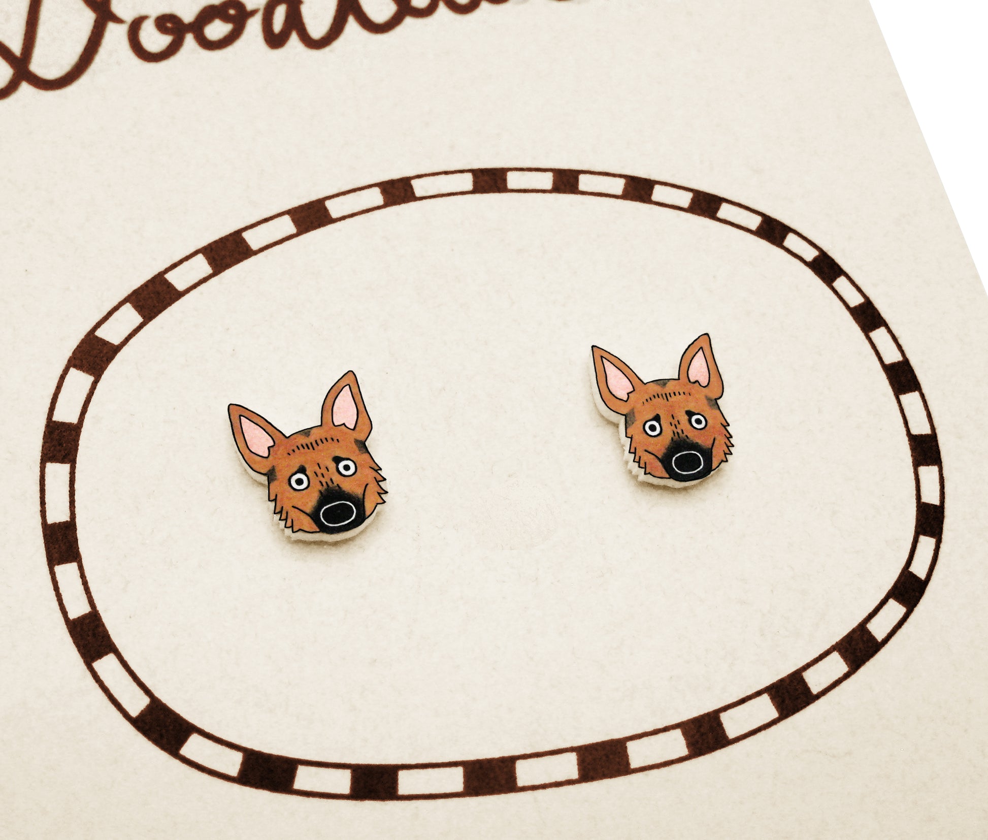 Tiny German Shepherd Stud Earrings | Hypoallergenic Dog Mom Gift