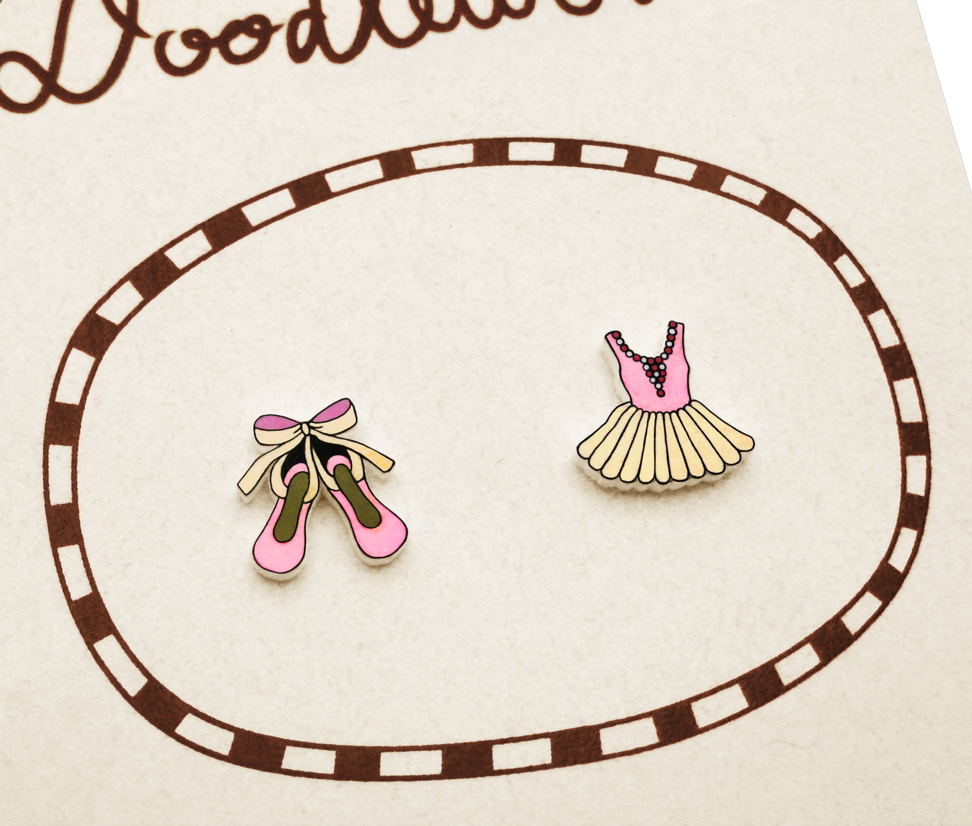 Tiny Pink Ballet Shoe & Dress Stud Earrings | Hypoallergenic Handmade Jewelry