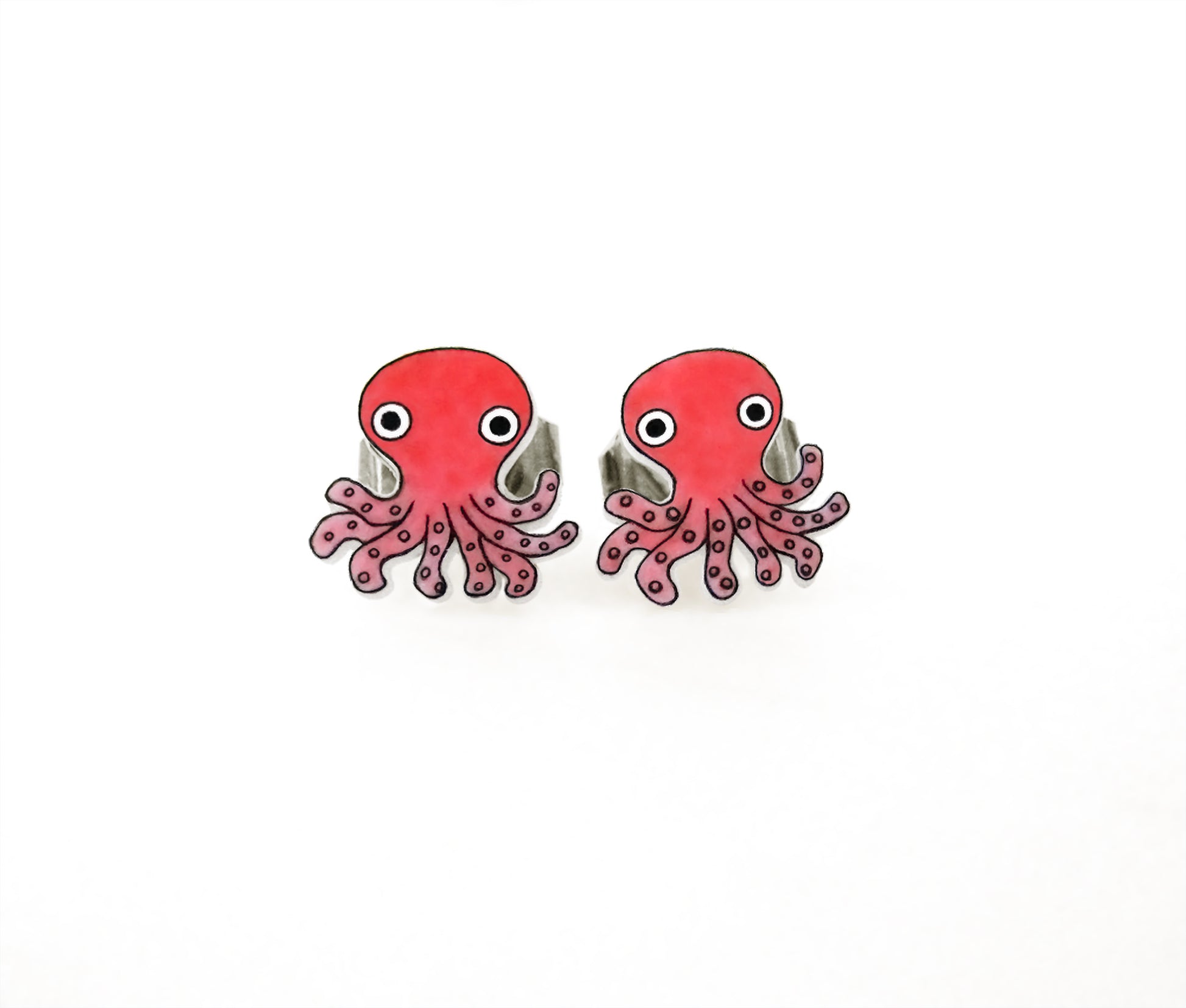 Tiny Pink Octopus Stud Earrings | Hypoallergenic Sea Creature Jewelry