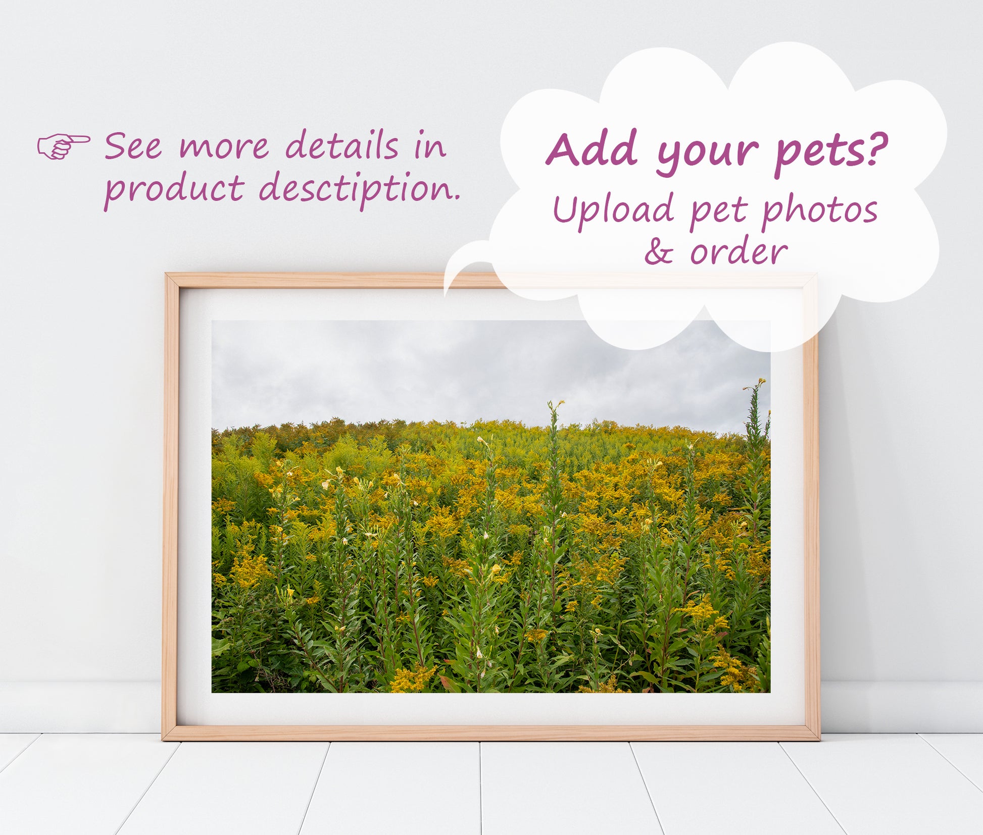 Custom Pet Portrait | Maine Wild Ragweed Yellow Flowers Landscape Photo Print | Boho Wall Art