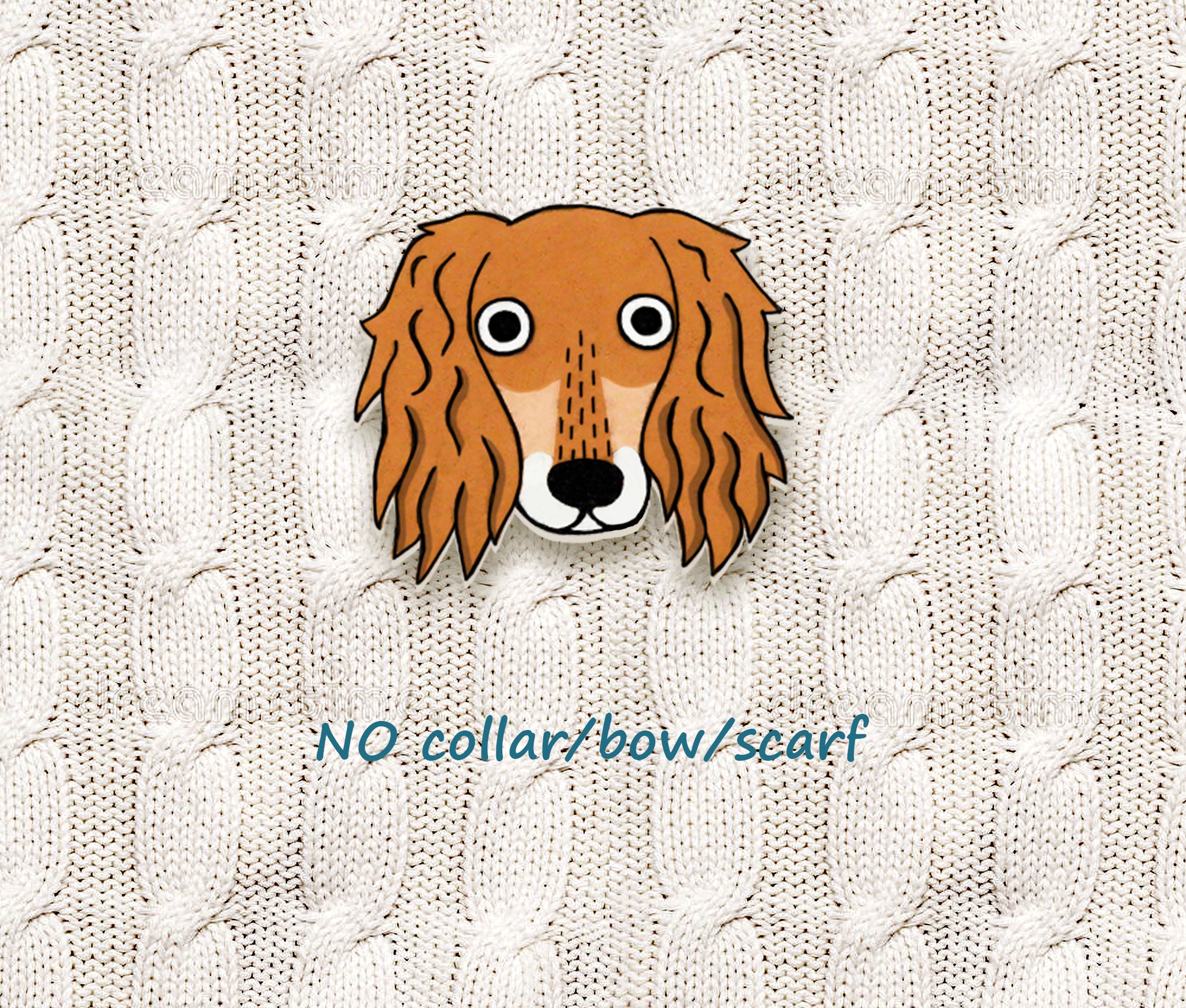 This cute fun personalized long hair dog shrink plastic pin is 100% handmade.