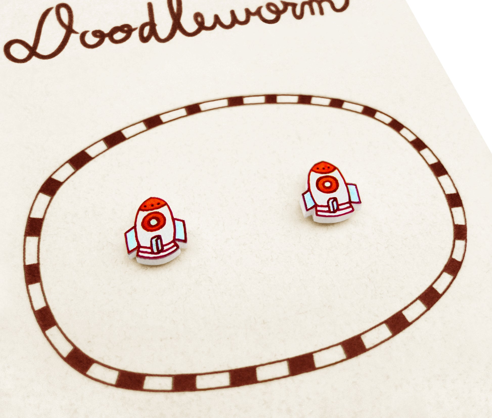 These cute dainty rocket shrink plastic earrings are 100% handmade.