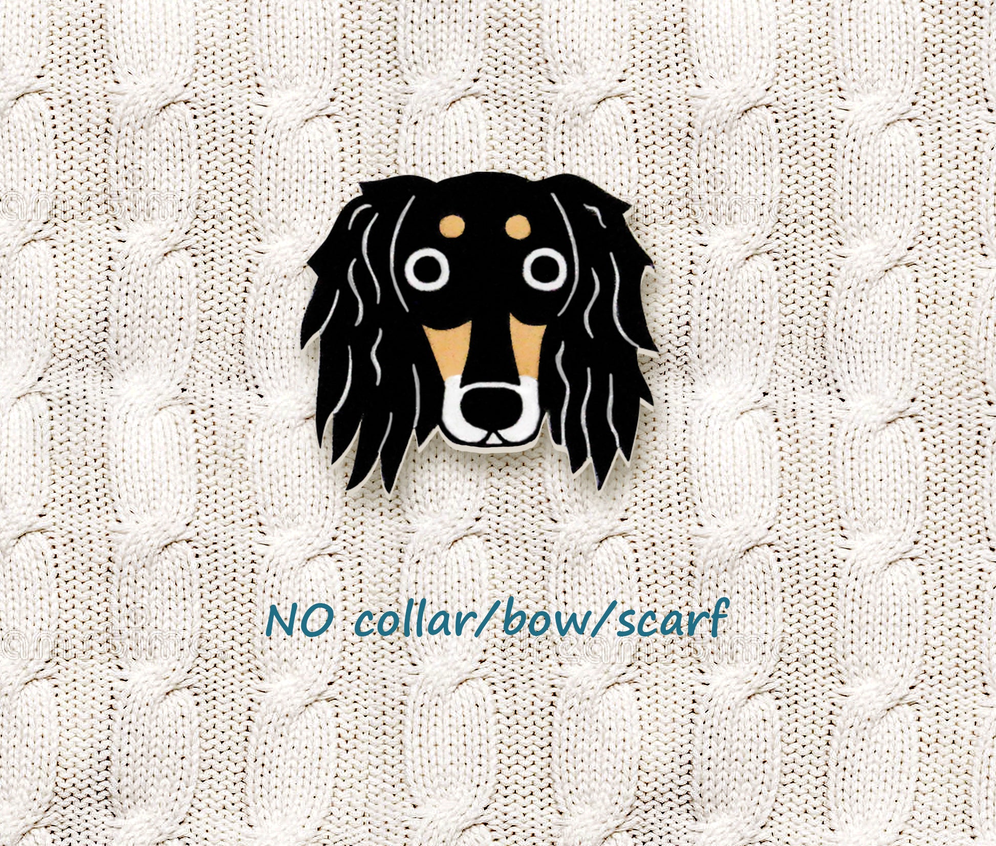 This cute fun personalized long hair dog shrink plastic pin is 100% handmade.