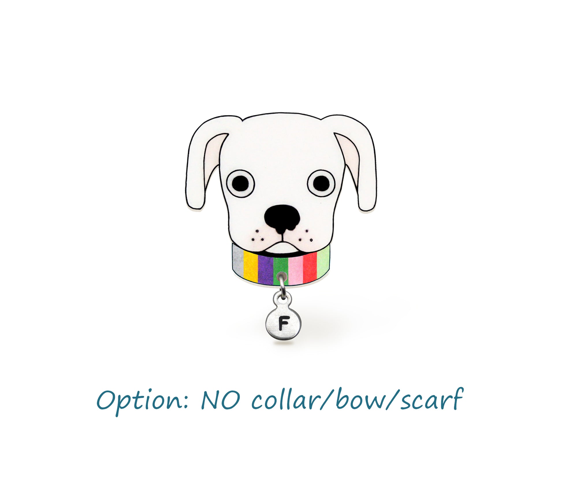 Each image is carefully drawn with color pencils and permanent markers, hand cut with a pair of tiny scissors, and shrunk with a heat gun. While these images are sealed with acrylic coatings, I would suggest not to immerse them in water. Pick your favorite collar, bow, or scarf and one of the hand stamped initial letter charms for personalization.