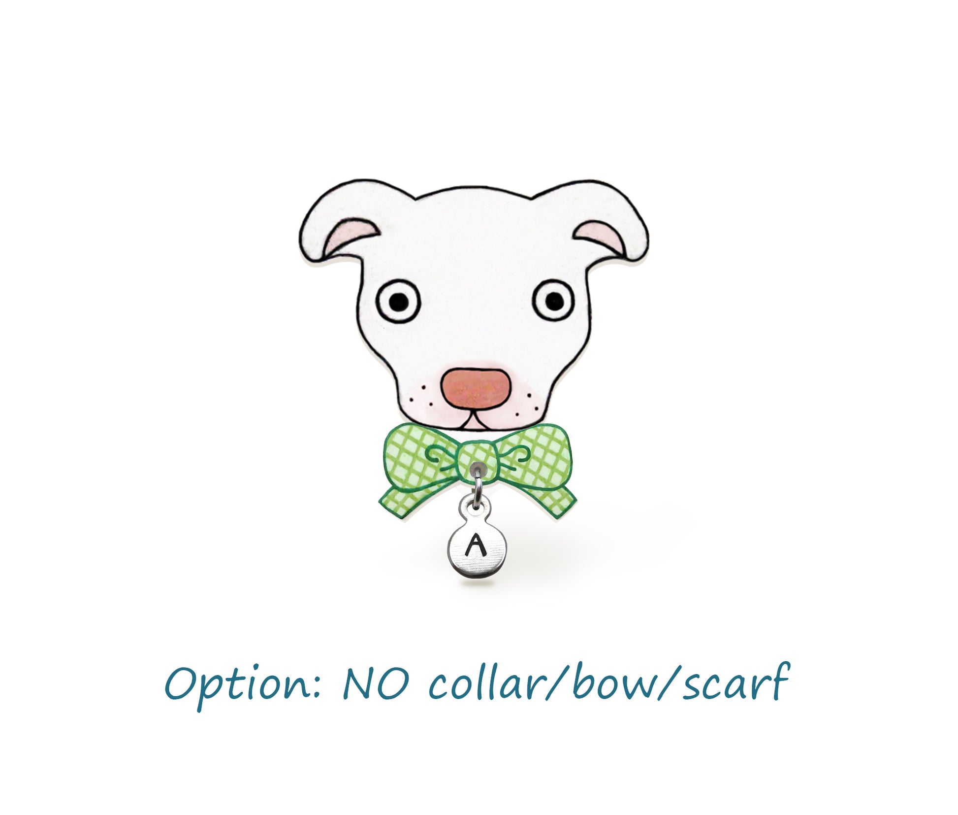Each image is carefully drawn with color pencils and permanent markers, hand cut with a pair of tiny scissors, and shrunk with a heat gun. While these images are sealed with acrylic coatings, I would suggest not to immerse them in water. Pick your favorite collar, bow, or scarf and one of the hand stamped initial letter charms for personalization.